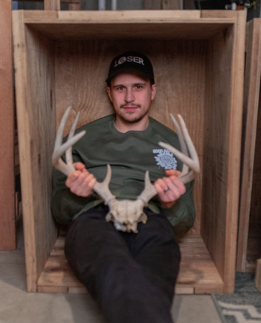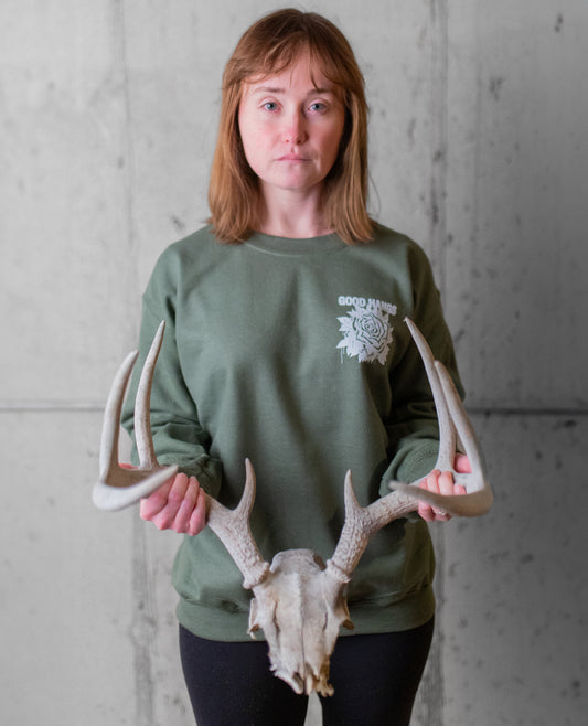 Good Hangs YEE HAW HELL YA Green Crewneck Rose Print